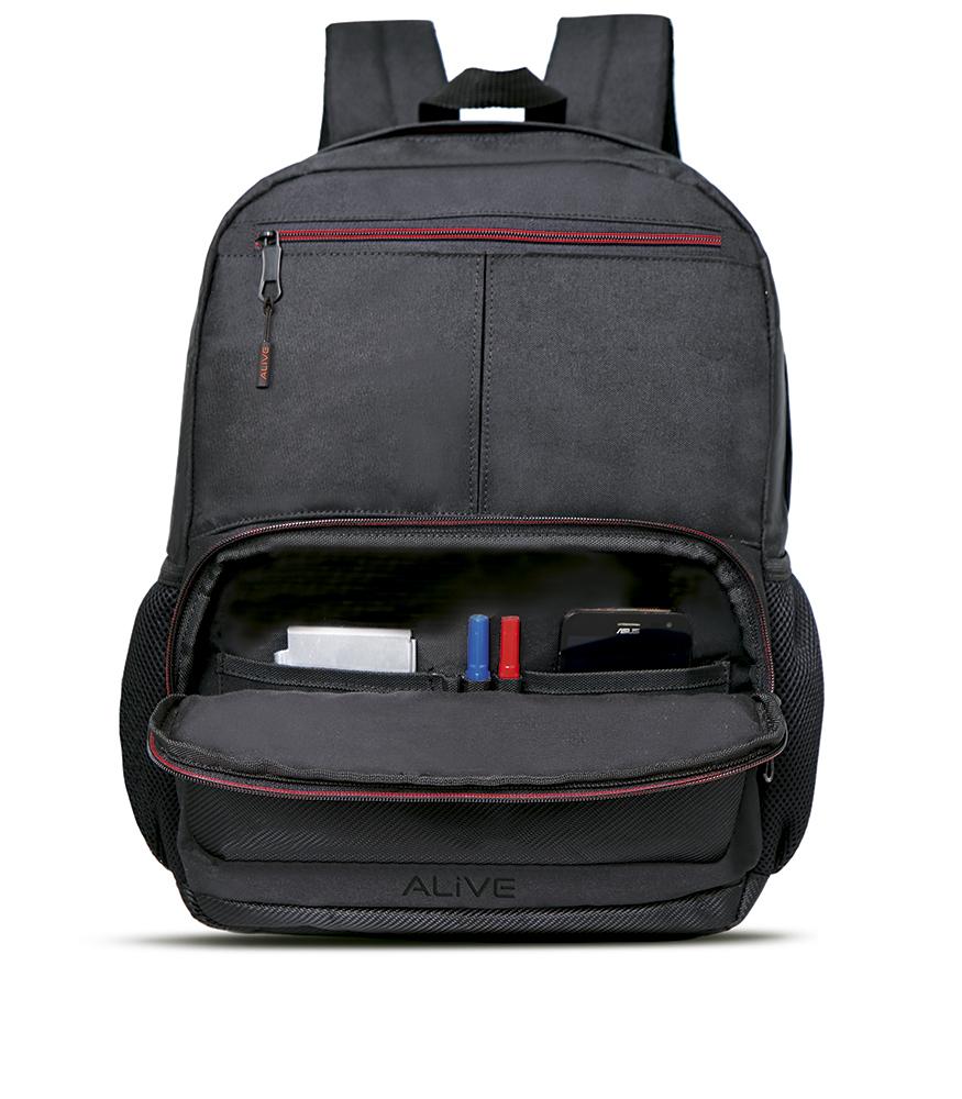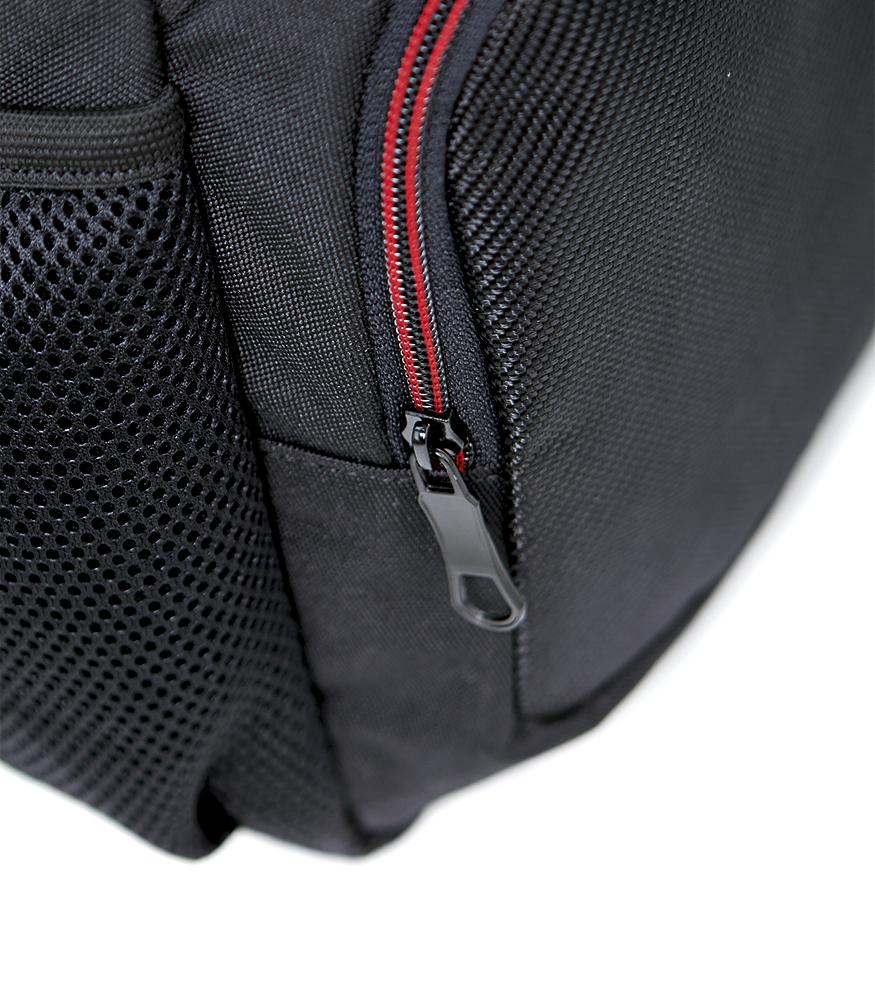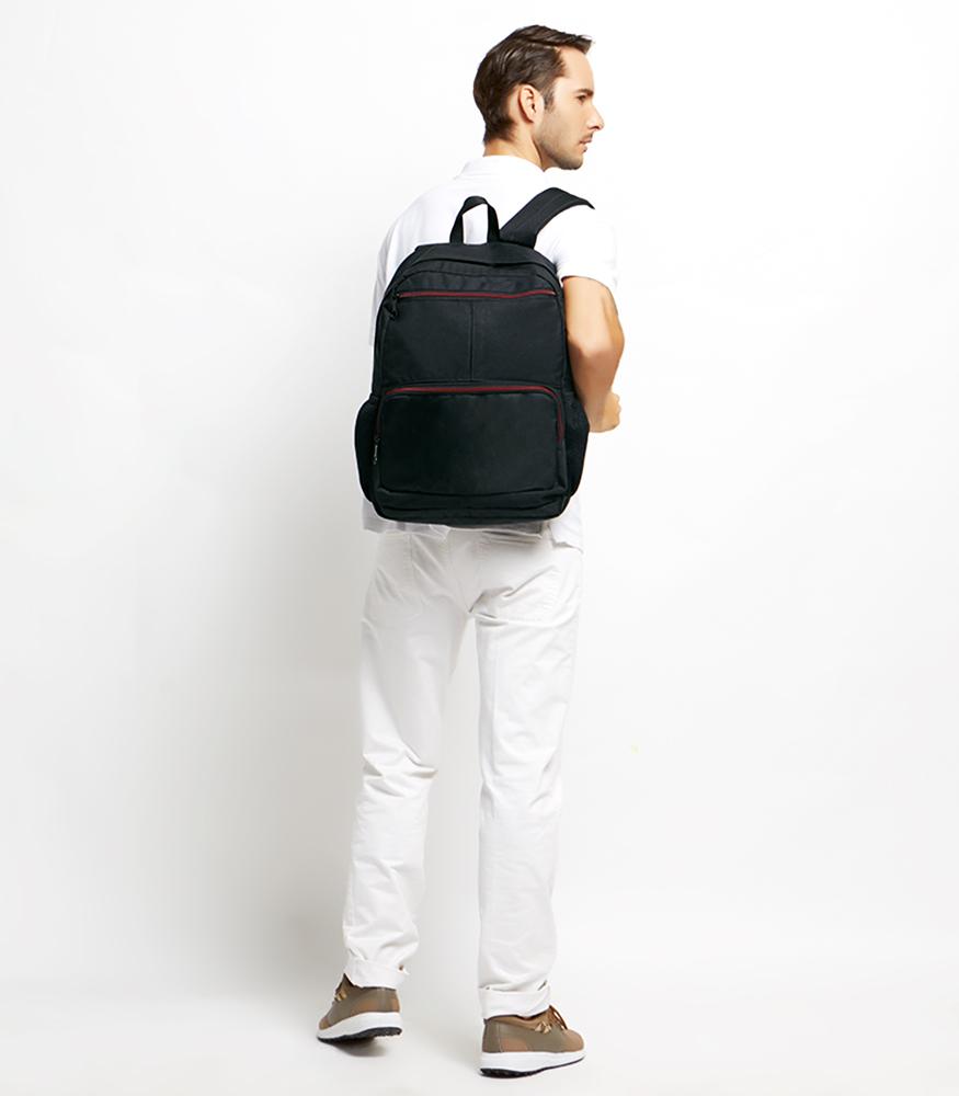 Comprising of 1 main zip pocket with laptop case, 2 front zip pocket with 1 organizer case, 1 back zip pocket, 1 open pocket at left and right.