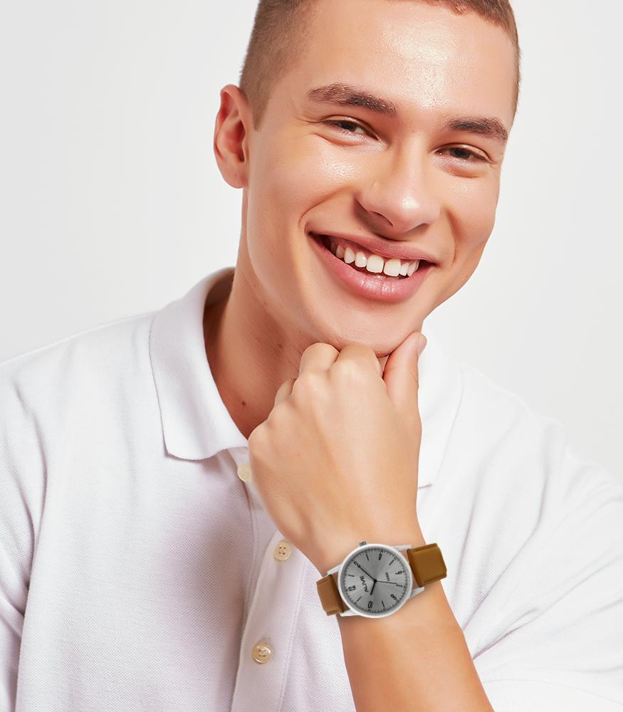 Mens watch with brown exclusive box with 2 straps with rubber and PU material, and water resistant 1 ATM
