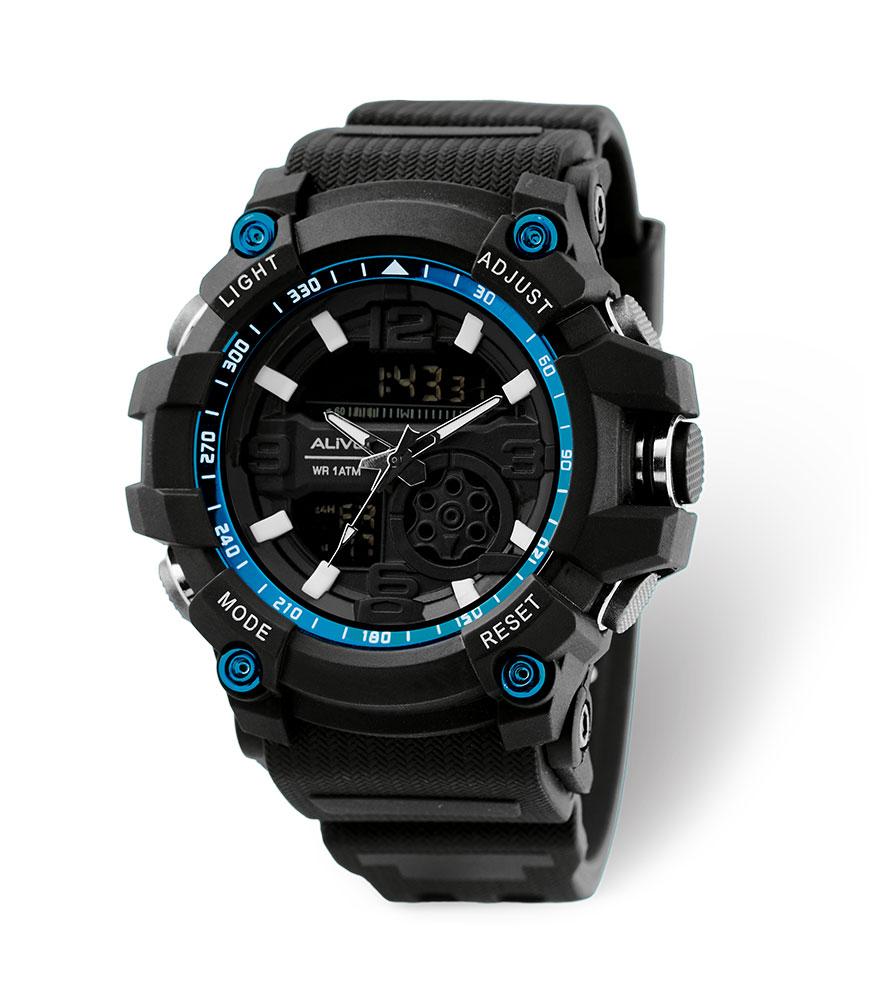 Mens dual movement watches, Digital and analog, with rubber strap and there are functionalwatch, alarm, calendar, lamp and water resistant 1 ATM