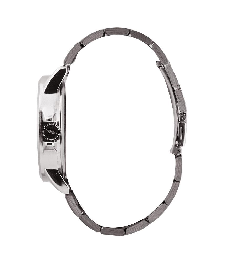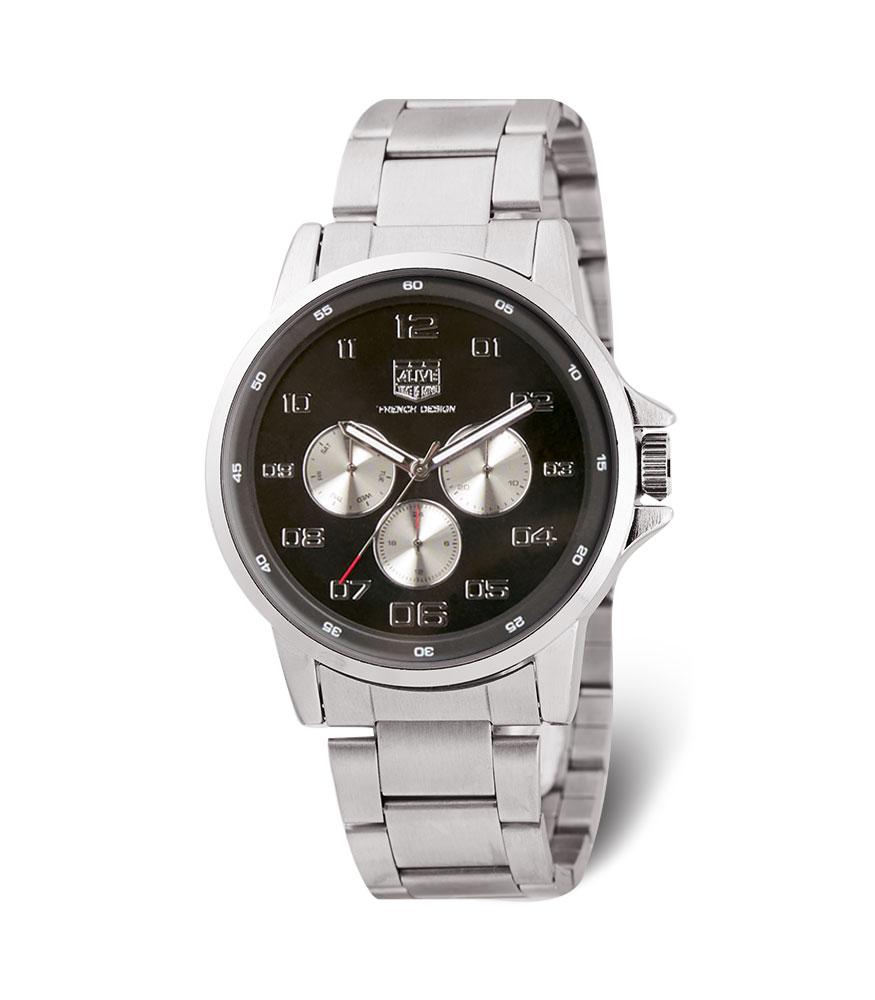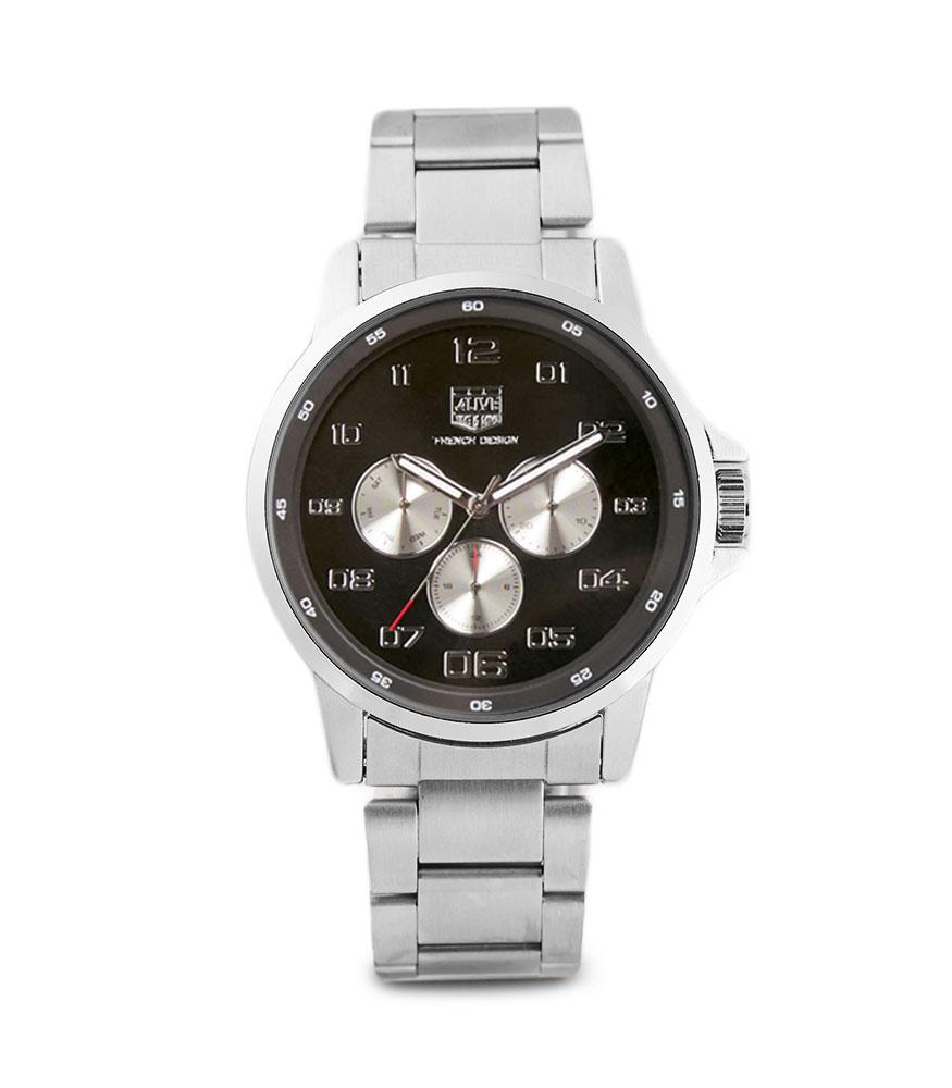 Analogue watches of men with silver stainless steel straps and there are day, date, and 24 hour pointing functions