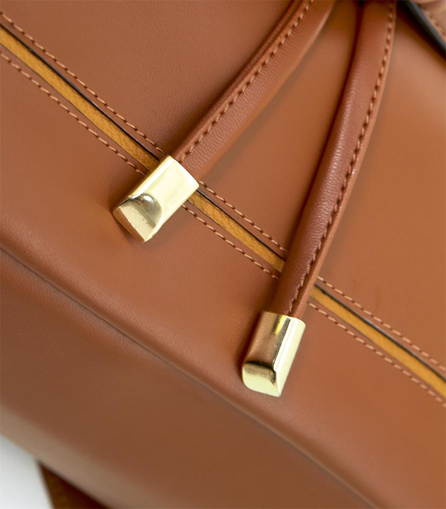 Comprising of 1 main zip pocket, 1 zip pocket inside and 1 zip pocket inside.Product Type: Shoulder BagStyle : BowlerGender : WomanMaterial : PVCColor : BROWNDimension : 43.5 x 13.5 x 25.5 cm