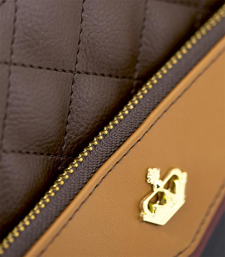 Comprising of 1 main zip pocket, 1 zip pocket in front and 1 zip pocket inside.