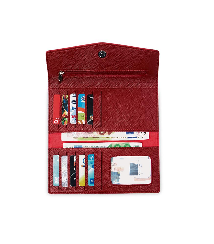 Comprising of 11 card pockets, 1 micca pocket, 2 money pockets and 1 zip pocket inside.