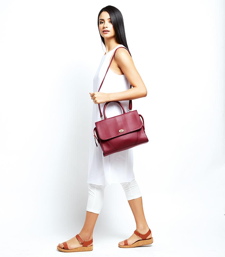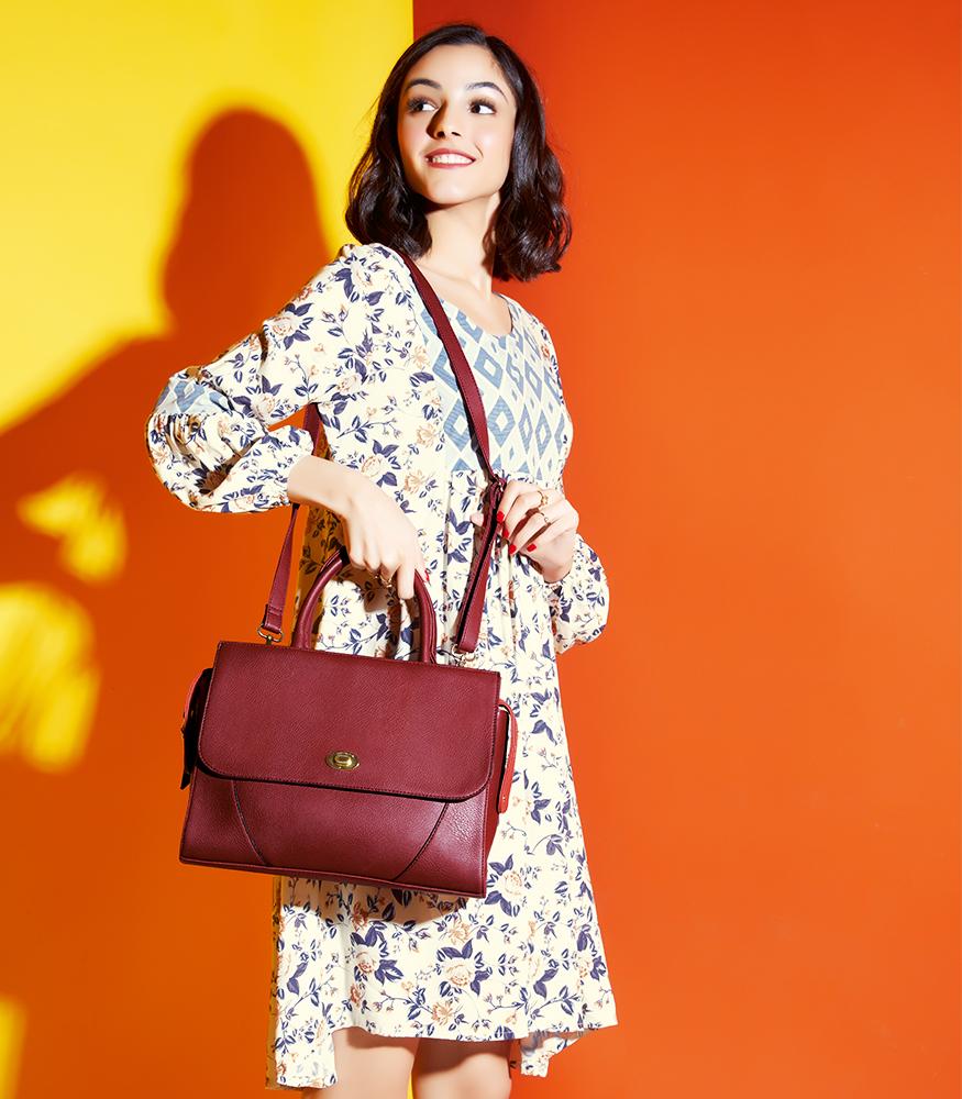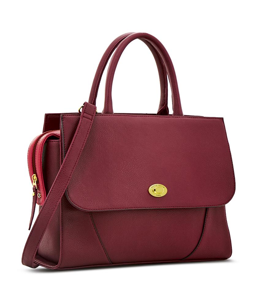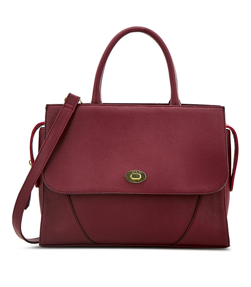 Comprising of 1 main zipper closure and 1 multifunction pocket at front behind flap.Product Type: Shoulder BagStyle : BowlerGender : WomanMaterial : SYNTHETIC LEATHERColor : MAROONDimension : 33,5X12X24 cm