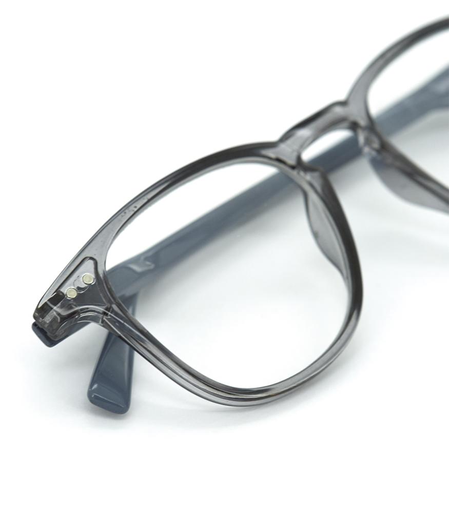 Sunglasses with transparent lenses but can be replaced with reading lenses, progressive lenses or lenses that suit your needs